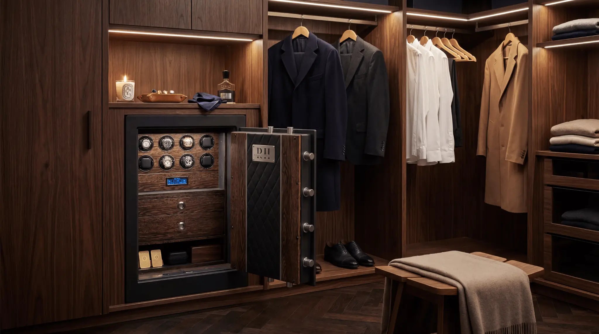 Conçu pour s’intégrer naturellement dans un dressing ou un bureau privé, le coffre transforme votre collection en véritable pièce maîtresse de votre espace.